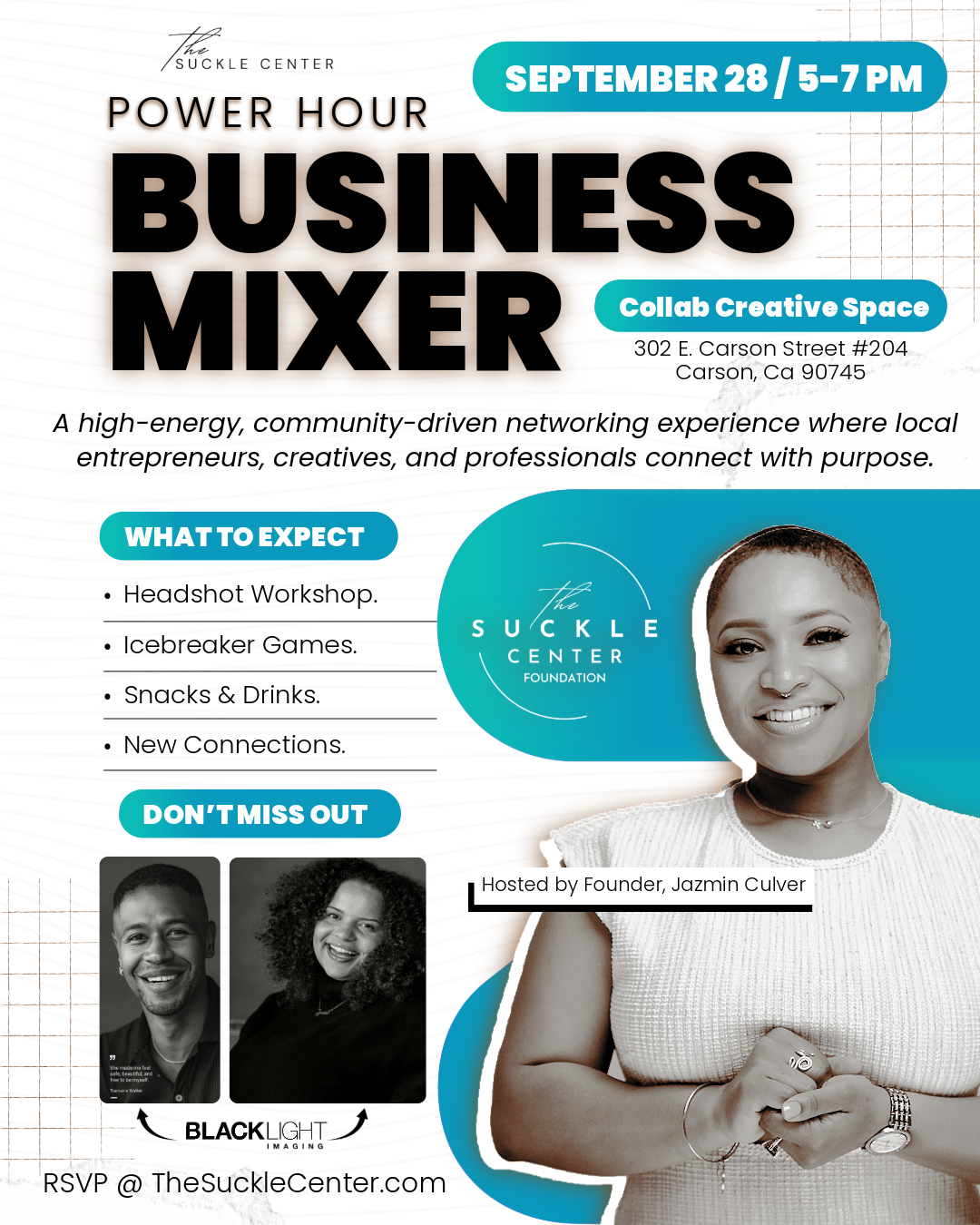 Sep 28 Power Hour Business Mixer Sunday, September 28, 2025 5:00 PM 7:00 PM Collab Creative Space (map) Google Calendar ICS Click to Register View Event →